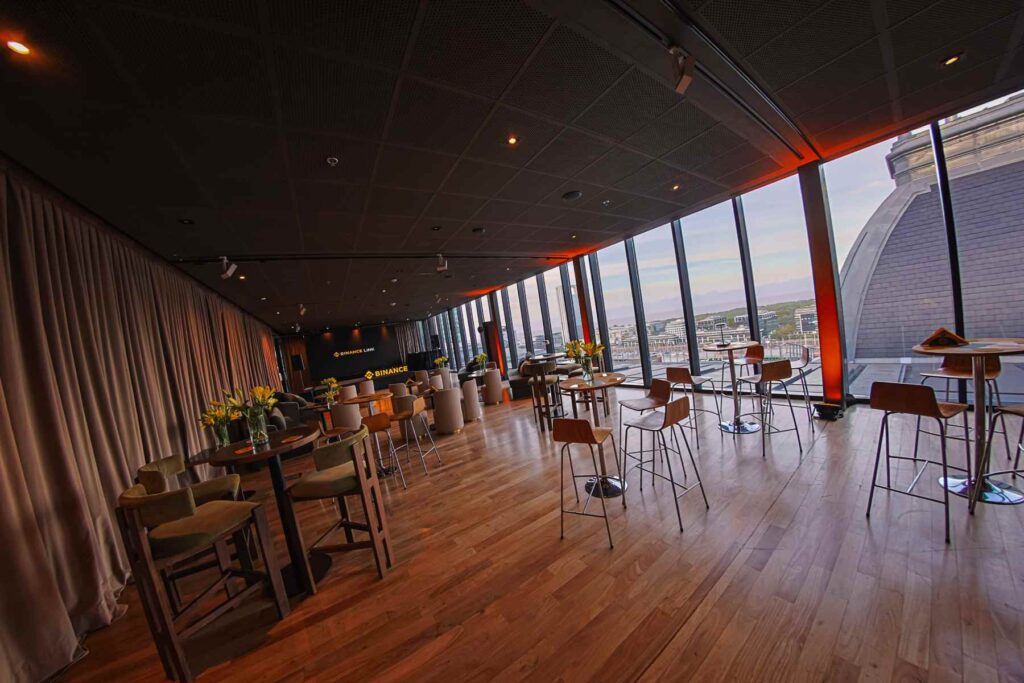 La experiencia, concebida de manera integral, incluyó la producción completa del evento: desde la selección del espacio y la ambientación, hasta la técnica, el catering, la acreditación y la entrega de swags. Cada detalle fue cuidadosamente diseñado para acompañar una propuesta de alto nivel, alineada con el posicionamiento de Binance Link.